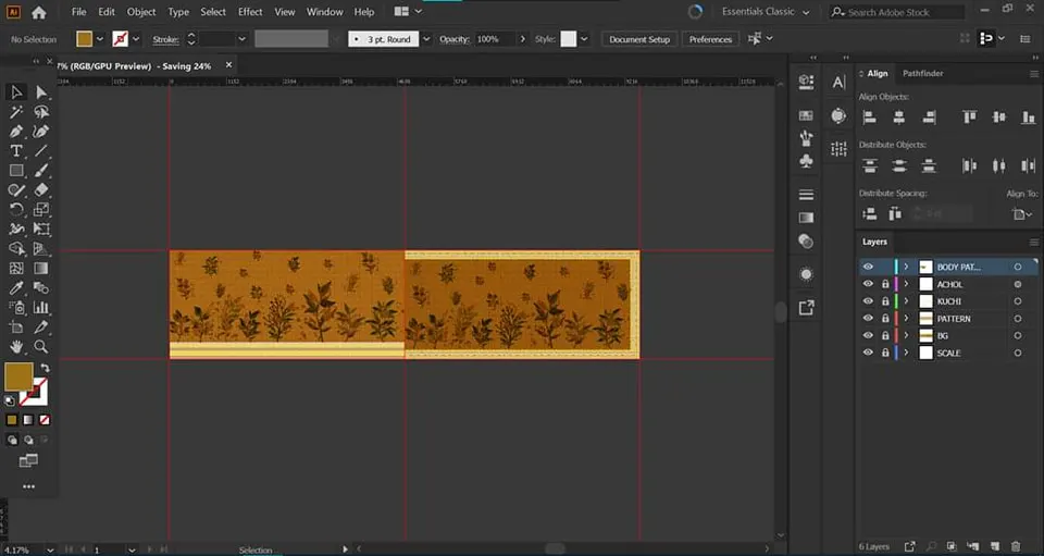 ৪. লেয়ার মেইনটেইন করা: ডিজাইন লেয়ার আকারে করলে প্রিন্টিংয়ের সময় অনেক সুবিধা হয়। কারণ বড় আকারের ফ্রেম সবসময় পাওয়া যায় না সে ক্ষেত্রে একই ডিজাইনকে ছোট ছোট ফ্রেমে ভাগ করা সহজ হয়।